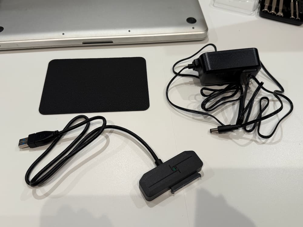取り出した内蔵ハードディスクをPCにつなぐには変換ケーブルが必要です。